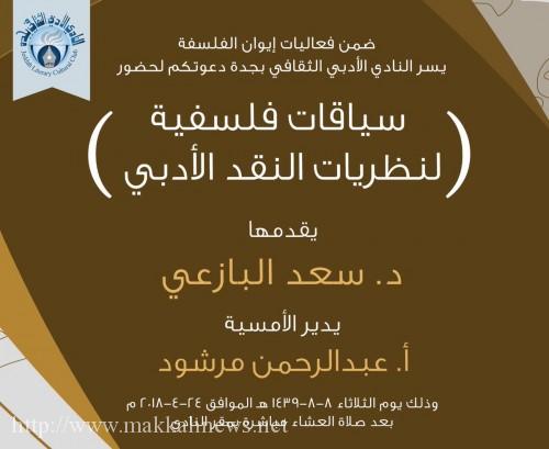 “السياقات الفلسفية لنظريات النقد الأدبي” محاضرة أدبية بأدبي جدة غداً