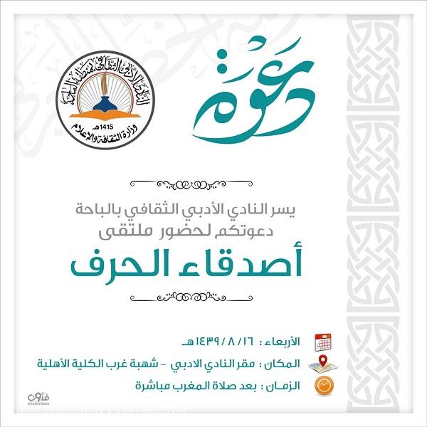 اليوم.. ملتقى “أصدقاء الحرف” في أدبي الباحة