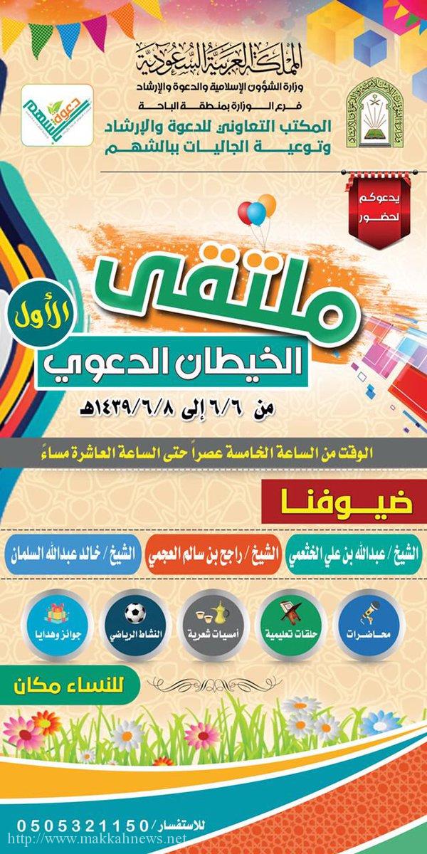 (مكة) – الباحة ينظم المكتب التعاوني للدعوة والارشاد وتوعوية الجاليات ببالشهم بالباحة غداً, فعاليات ملتقى الخيطان الدعوي الذي يستمر لمدة…