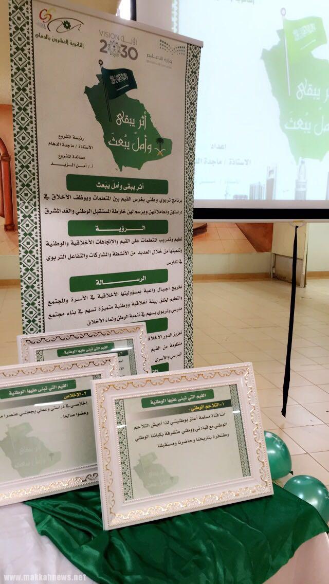 كلمة تحمل في طياتها معاني وطنية وقيم راقية ترسم خارطة المستقبل الوطني والغد المشرق لدى طالبات المدرسة. أثر يبقى وأمل…