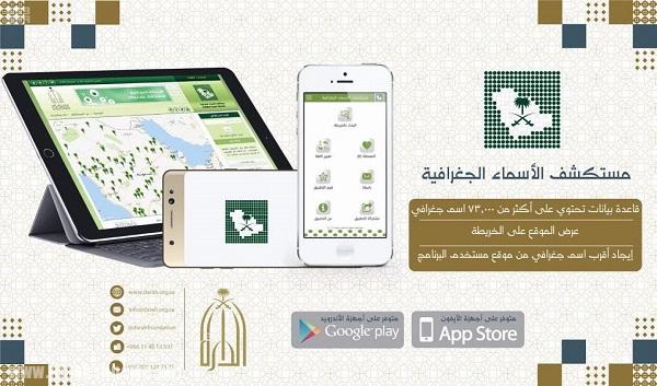 دارة الملك عبد العزيز تطلق تطبيقاً رسمياً لمشروع مستكشف الأسماء الجغرافية في المملكة