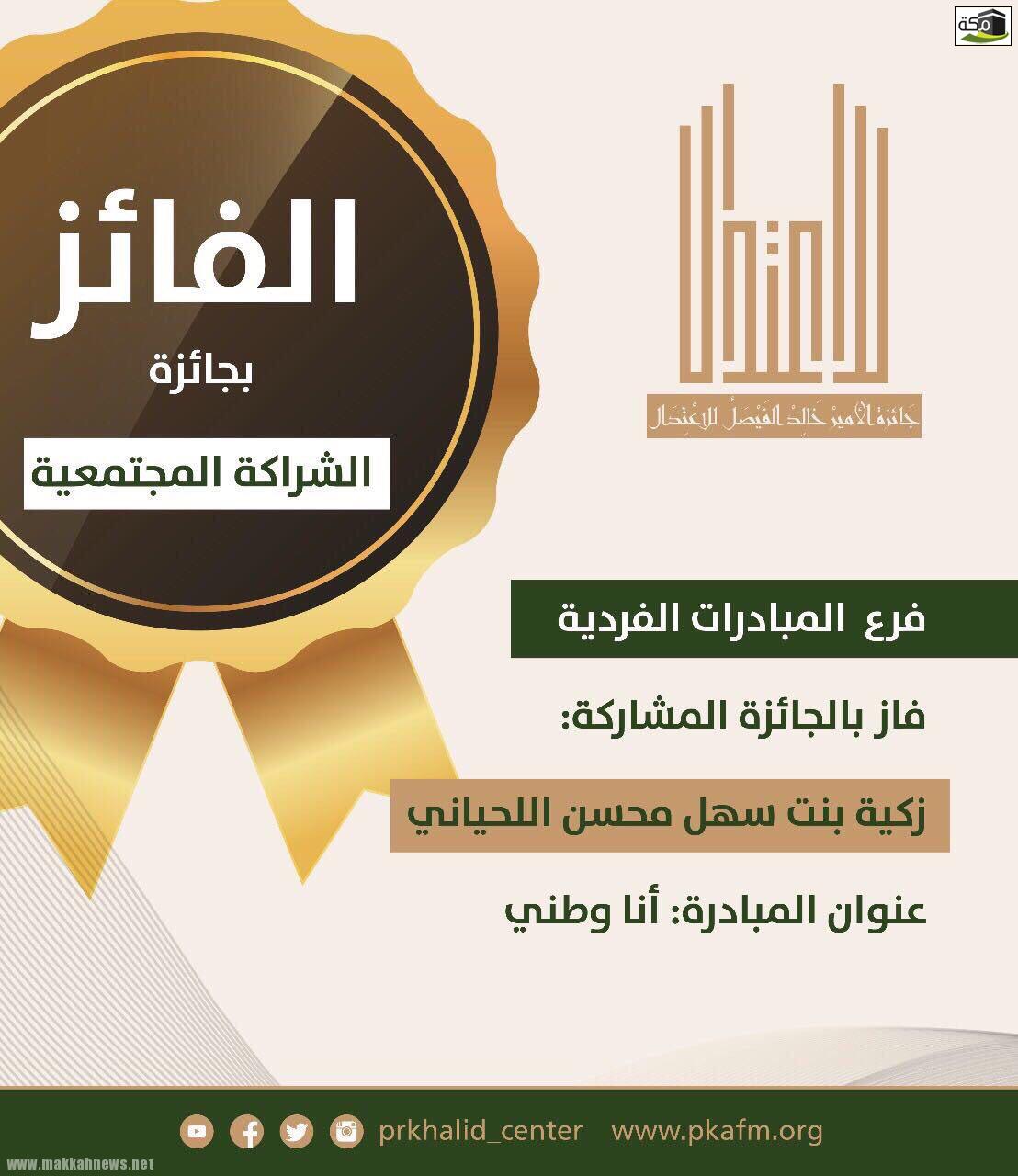 اللحياني تحصد جائزة الشراكة المجتمعية في مسابقة الأمير خالد الفيصل للاعتدال