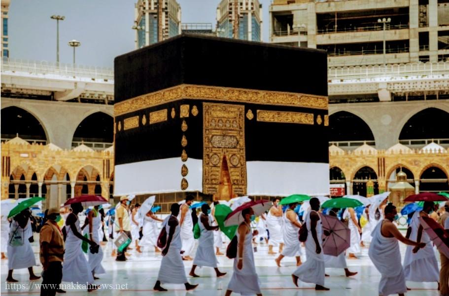 شؤون الحرمين توزع “مظلات” على حجاج بيت الله الحرام