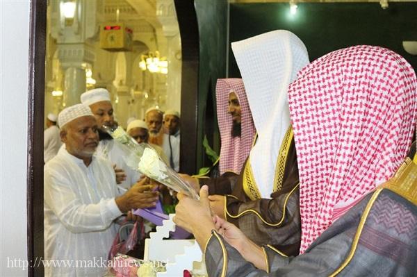 هيئة الأمر بالمعروف بالمسجد الحرام تستقبل وفود الرحمن بالورد والطيب