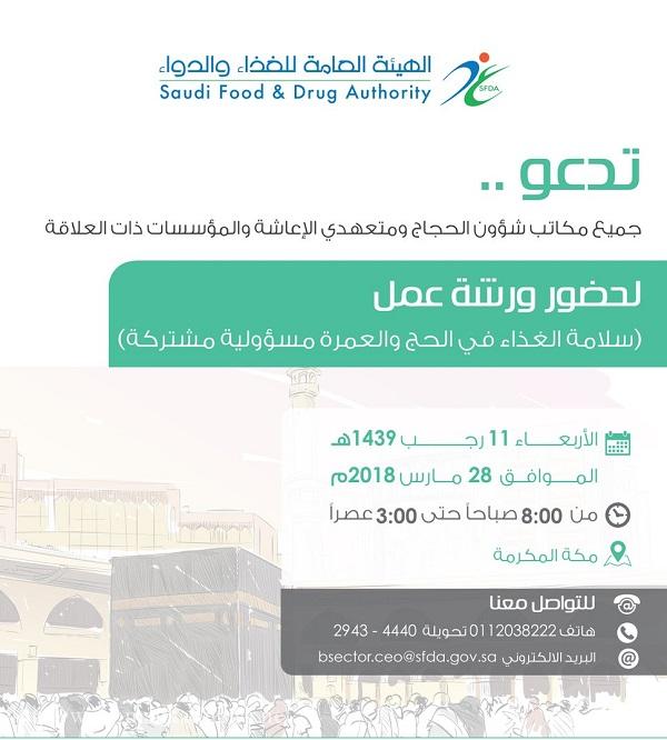 الأربعاء.. “الغذاء والدواء” تنظم ورشة عمل عن سلامة الغذاء في الحج والعمرة