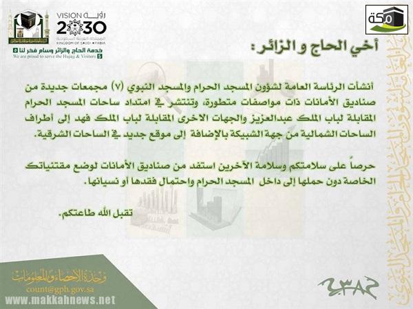 استحداث سبعة صناديق للأمانات بالمسجد الحرام