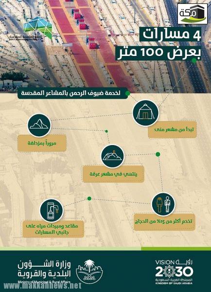 تهيئة أربعة مسارات بعرض 100 متر للمشاة في المشاعر المقدسة بخدمات متكاملة