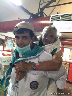 من الصور المشرفة.. كشاف يحمل حاجاً مسناً على ظهره