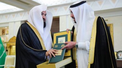 د. السديس يهدي سمو أمير منطقة القصيم نسخة فاخرة مترجمة من كتاب سموه (الأمان الأول)