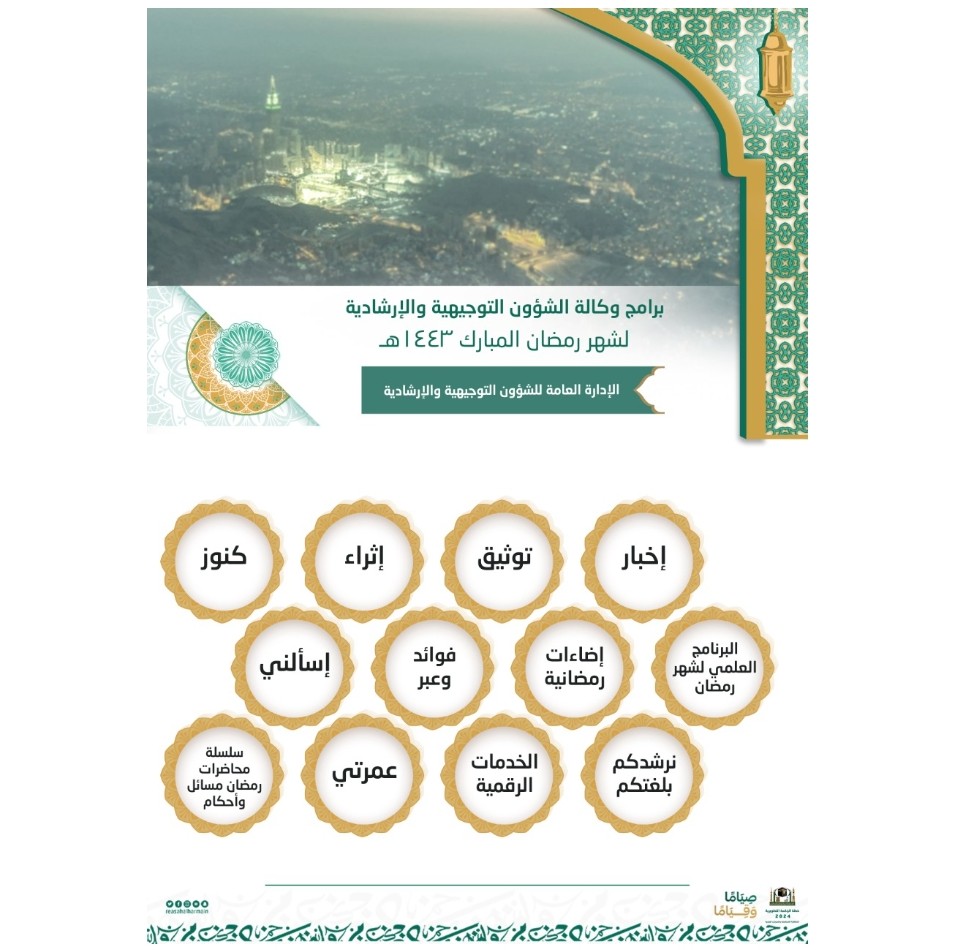 شؤون الحرمين الشريفين : 33 برنامجاً توجيهياً وإرشادياً خلال شهر رمضان المبارك1443