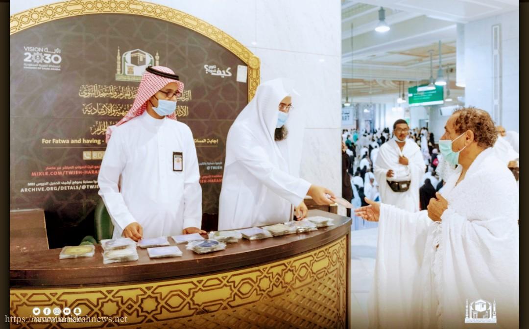 توزيع أكثر من 500 قرص (CD) لتلاوات أئمة المسجد الحرام على زوار البيت العتيق