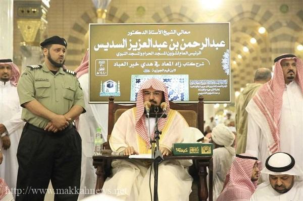 “السديس” يلقي درسه الدوري في رحاب المسجد النبوي