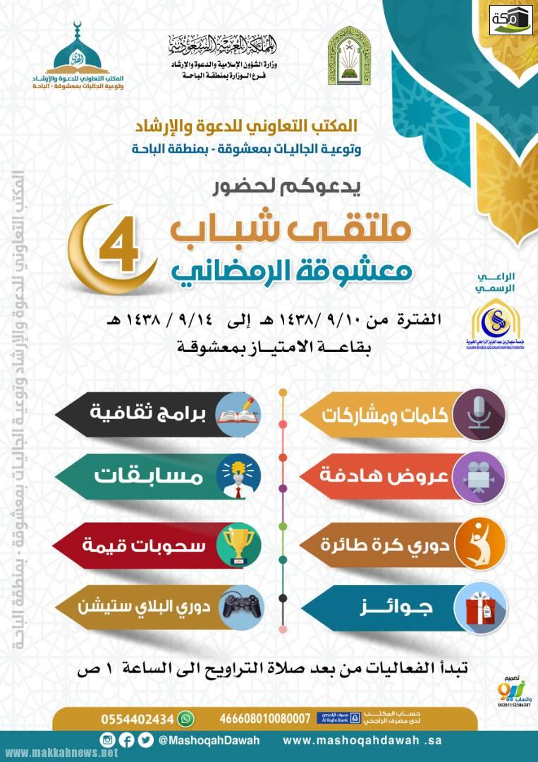 (مكة) حسن الصغير – معشوقة يعتزم المكتب التعاوني للدعوة والإرشاد وتوعية الجاليات بمركز معشوقة على إقامة ملتقى شباب معشوقة…