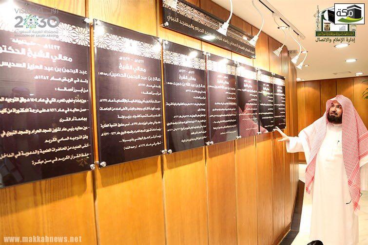 “السديس” يدشن لوحة كبيرة بمبنى رئاسة الحرمين