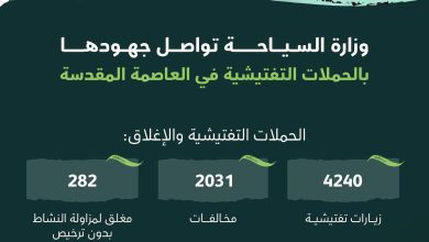 نفذت وزارة السياحة أكثر من 4000 جولة تفتيشية على مرافق الضيافة السياحية في مكة المكرمة تحت شعار ” ضيوفنا أولوية…