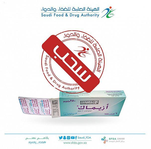 “الغذاء والدواء” توقف استخدام تشغيلة من مستحضر AZIMAC 250 mg