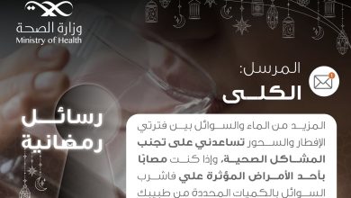 نصحت” الصحة “ وضمن حملتها التوعوية تحت شعار “ رمضان مفتاح بأهمية شرب الماء والسوائل بين فترتي الإفطار والسحور للمساعدة…