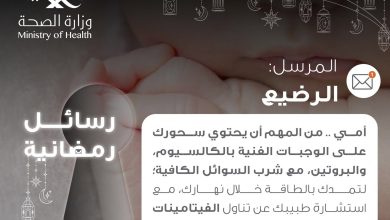 أطلقت الصحة حملة توعوية تحت شعار رمضان مفتاح تتضمن أهمية تناول وجبة السحور للأمهات المرضعات والغنية بالكالسيوم والبروتين مع السوائل…