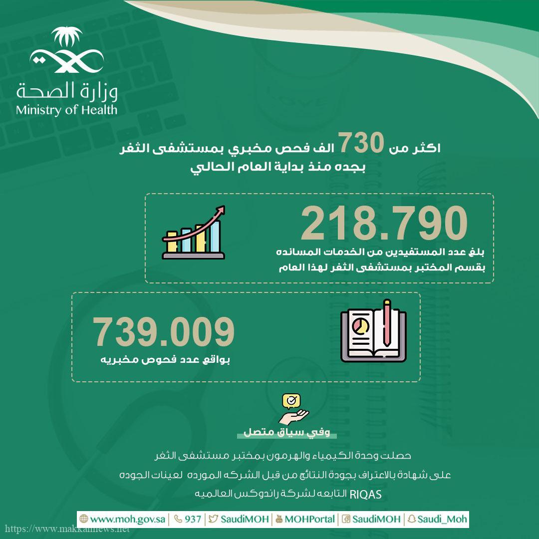 أكثر من ( 730 ) ألف فحص مخبري بمستشفى الثغر بجدة