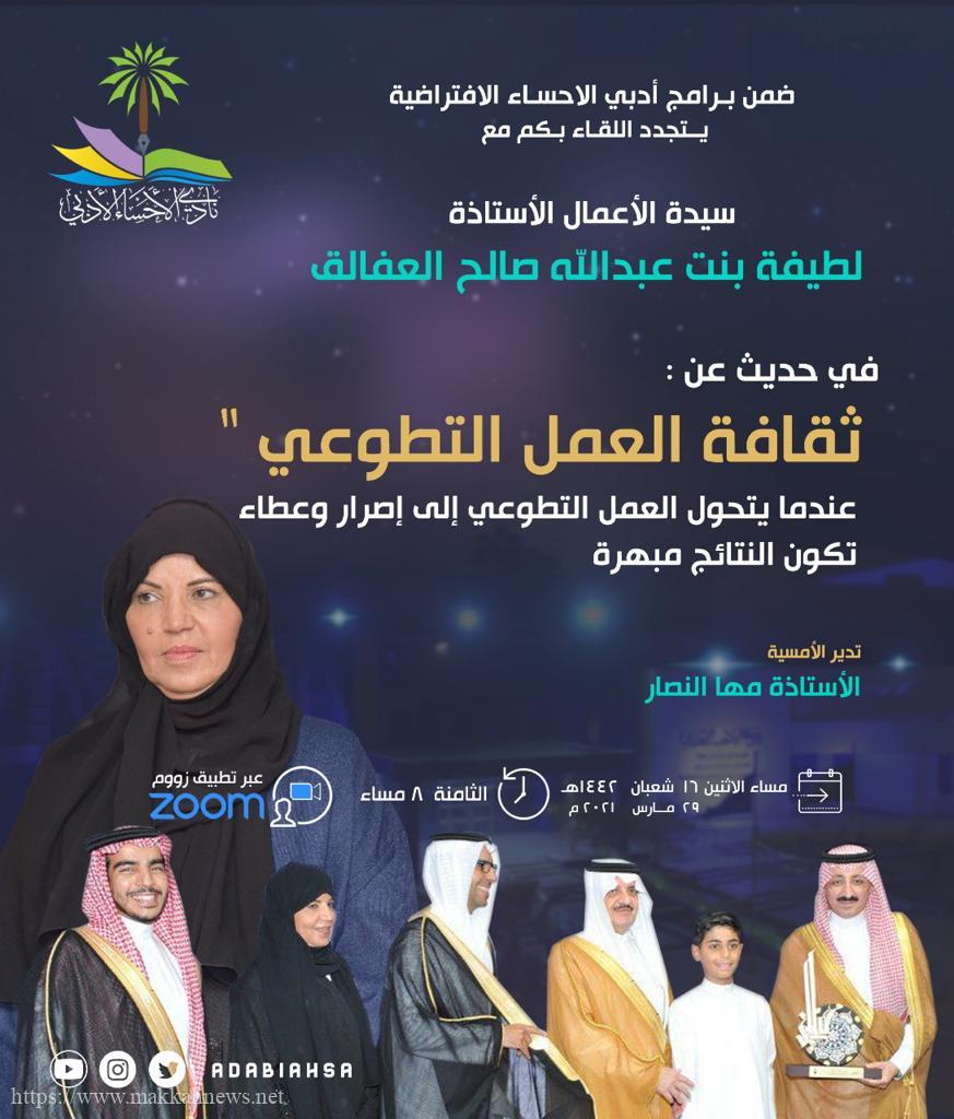 ثقافة العمل التطوعي في أدبي الأحساء افتراضيا