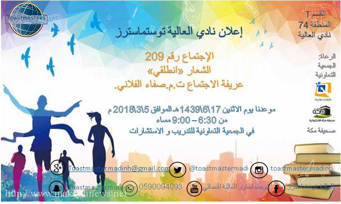 مكة – ت. م نرمين الحربي – المدينة المنورة لنادي العالية توستماسترز والذي كان في يوم الاثنين 10/6/1439الموافق28/2/2018الذي كان في…