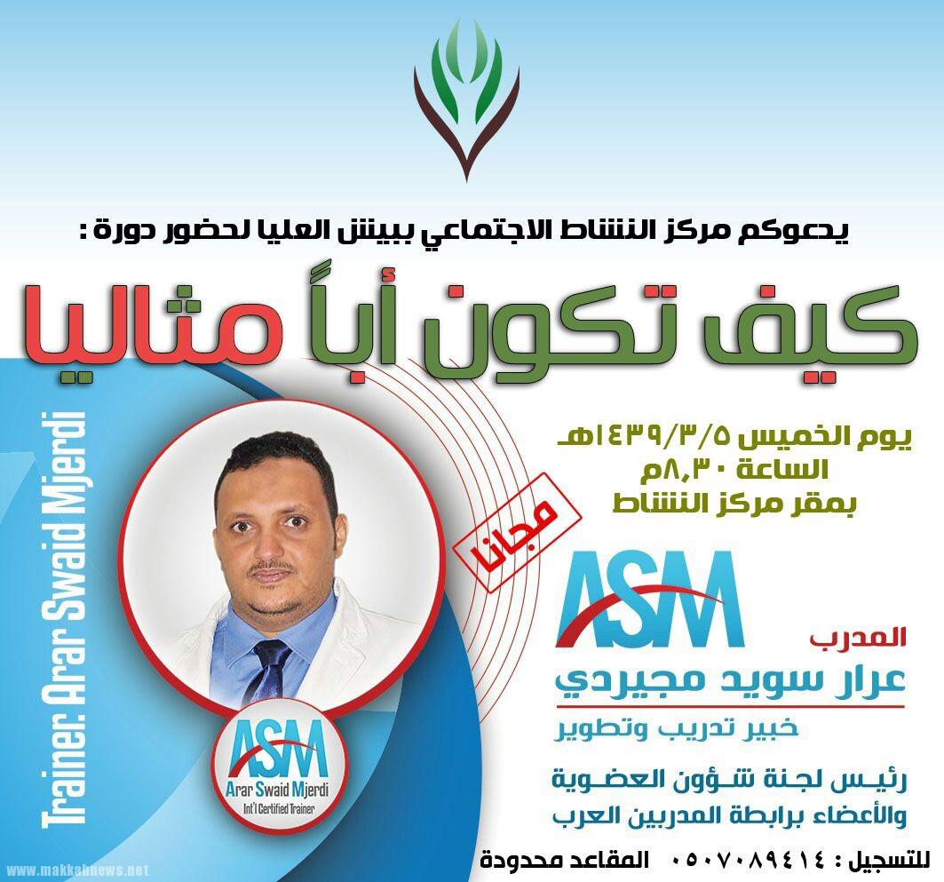 نشاط بيش العليا يعلن عن إقامة دورة تدريبية بعنوان “كيف تكون أباً مثاليا “