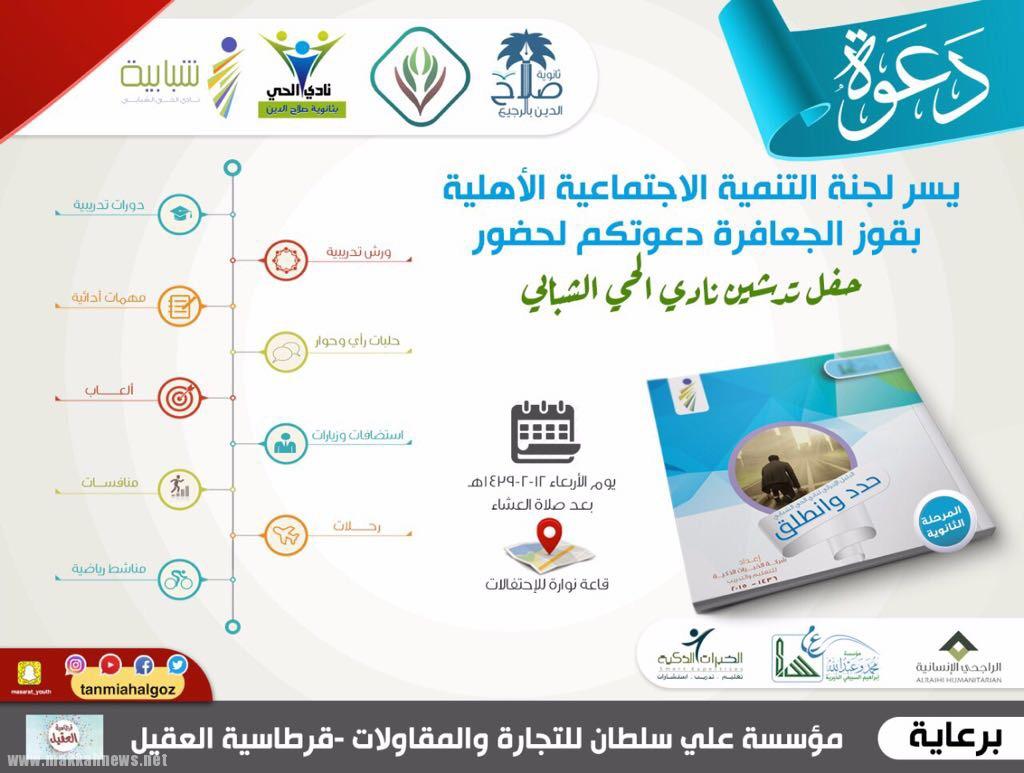إبراهيم القصادي – قوز الجعافرة يسر لجنة التنمية الاجتماعية الأهلية بقوز الجعافرة دعوتكم لحضور حفل تدشين نادي الحي الشبابي مسار…