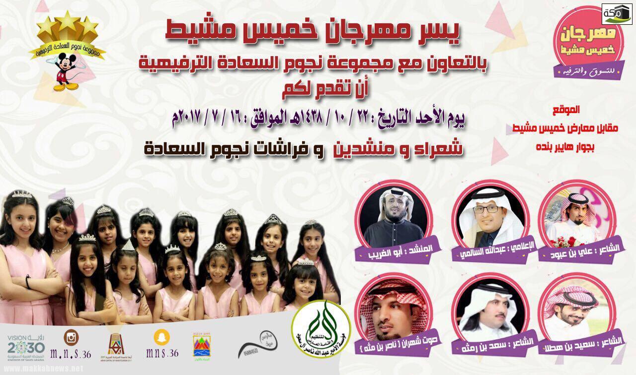 يحتض مهرجان خميس مشيط للتسوق والترفيه أمسية شعرية يحييها العديد من الشعراء على مسرح المهرجان عقب صلاة العشاء .…