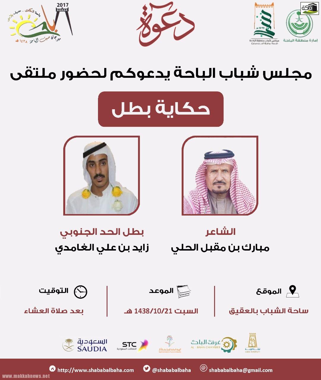 (مكة) حسن الصغير – العقيق يُنظم مجلس شباب منطقة الباحة يوم السبت ٢١-١٠-١٤٣٨هـ ملتقى “حكاية بطل”، والذي يتضمن أمسية…