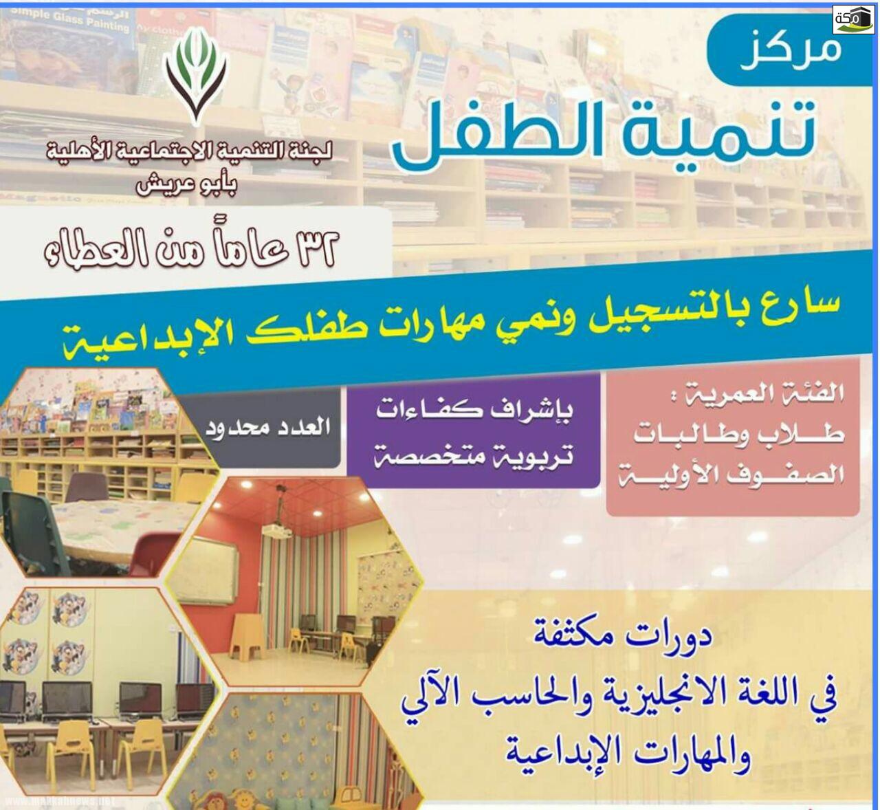 مكة – إبراهيم القصادي – أبوعريش بدأ مركز تنمية الطفل بلجنة التنمية الاجتماعية بمحافظة أبوعريش اليوم ، تسجيل الراغبين…