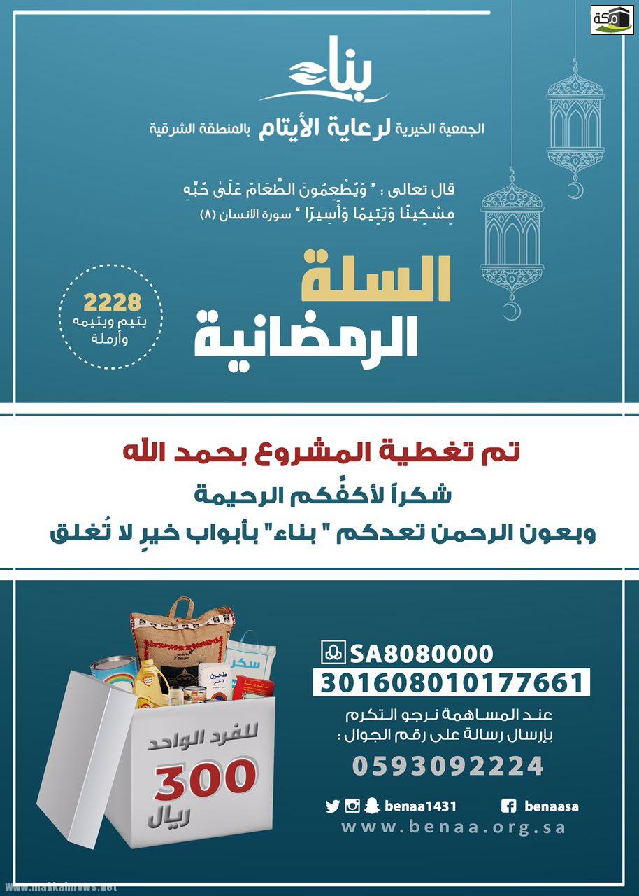 أكثر من نصف مليون ريال قيمة السلة الرمضانية لأسر بناء