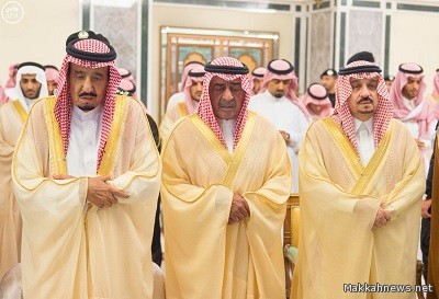 خادم الحرمين يؤدي صلاة الميت على الأمير عبدالله بن عبدالعزيز بن مساعد بن جلوي رحمه الله