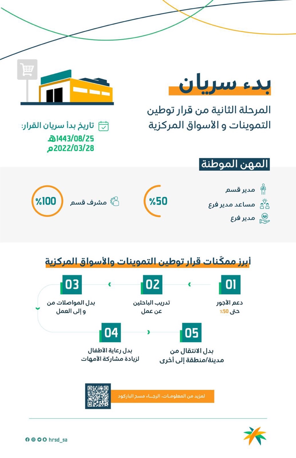 بدء سريان المرحلة الثانية من قرار توطين التموينات والأسواق المركزية