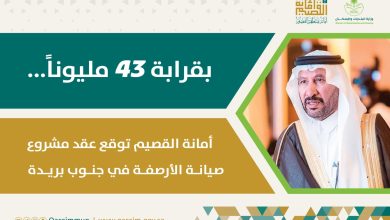 وقع أمين منطقة القصيم المهندس محمد بن مبارك المجلي عقد مشروع صيانة الأرصفة جنوب مدينة بريدة بقيمة إجمالية بلغت (42.808.750…