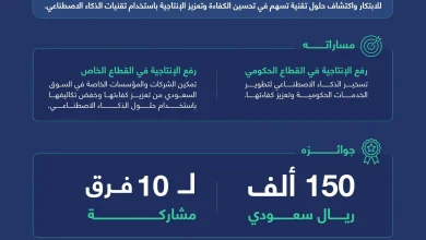 أعلنت تسع جهات حكومية عن إطلاق أول هاكاثون لرفع الإنتاجية في القطاعين الحكومي والخاص باستخدام الذكاء الاصطناعي (إنجاز) وبدء التسجيل…