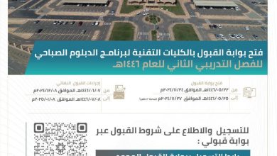 تعلن الكلية التقنية بالقنفذة عن فتح باب القبول في برنامج الدبلوم للفصل التدريبي الثاني للعام 1446هـ، ابتداءً من يوم غدٍ…