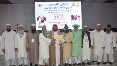 قدم رئيس جمعية خريجي الجامعات السعودية في الهند الدكتور طارق صفي الرحمن المباركفوري درعاً تذكارياً لمعالي وزير الشؤون الإسلامية والدعوة…