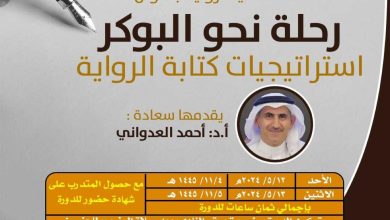 عائشة المرواني – مكة يُقيم نادي مكة الثقافي الأدبي دورة تدريبية مجانية في الرواية بعنوان: “استراتيجيات كتابة الرواية” رحلة نحو…