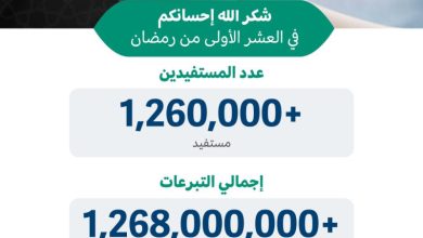 منصة إحسان تعلن تجاوز تبرعات الحملة الوطنية للعمل الخيري مليار و٢٦٨ مليون ريال منذ بداية رمضان
