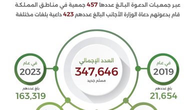 أعلنت وزارة الشؤون الإسلامية والدعوة والإرشاد، أنه خلال الخمس أعوام السابقة، بلغ عدد الداخلين في الإسلام من الرجال والنساء 347،646…