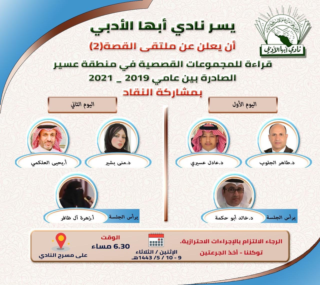 حسن آل خلاف – أبها أعلن نادي أبها الأدبي عن موعد ملتقى القصة( ٢) والذي ستكون فعالياته على يومي الاثنين…
