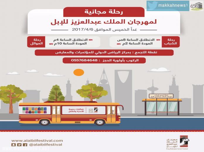 (مكة) – الرياض ينظم مهرجان الملك عبدالعزيز للإبل اليوم الخميس رحلات مجانية لزيارة المهرجان للشباب والعائلات، ستنقل الزوار من مركز الرياض…