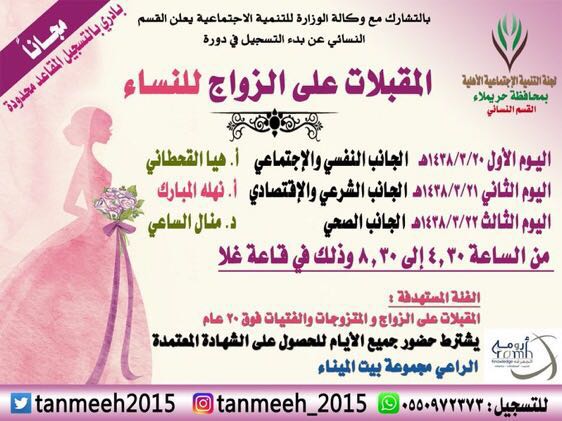 لجنة التنمية الإجتماعية بحريملاء تُقيم دورة “المقبلات على الزواج”