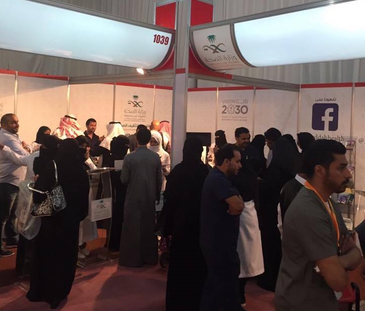 الصحة تشارك في معرض الكتاب بعياداتها وكوادرها، وتوعي الزوار بالتقنية الحديثة