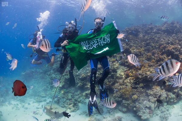 لجنة التصوير الضوئي بالطائف تحتفي باليوم الوطني تحت الماء