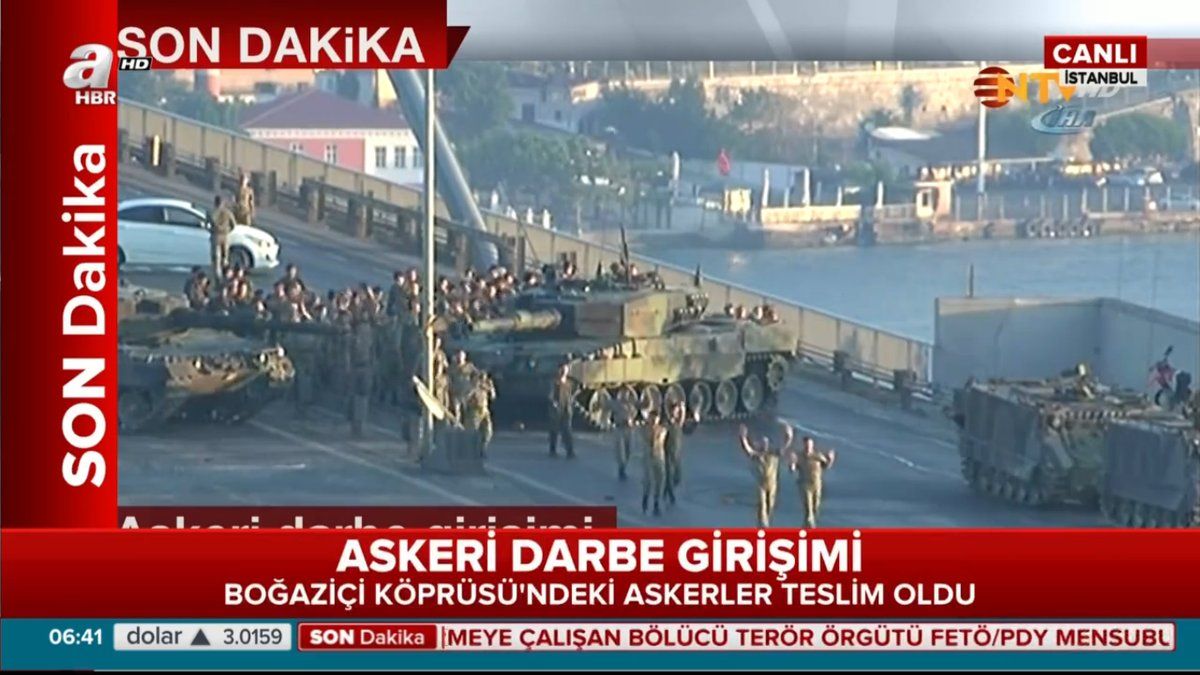 استسلام العشرات من جنود الإنقلاب في تركيا على جسر البوسفور
