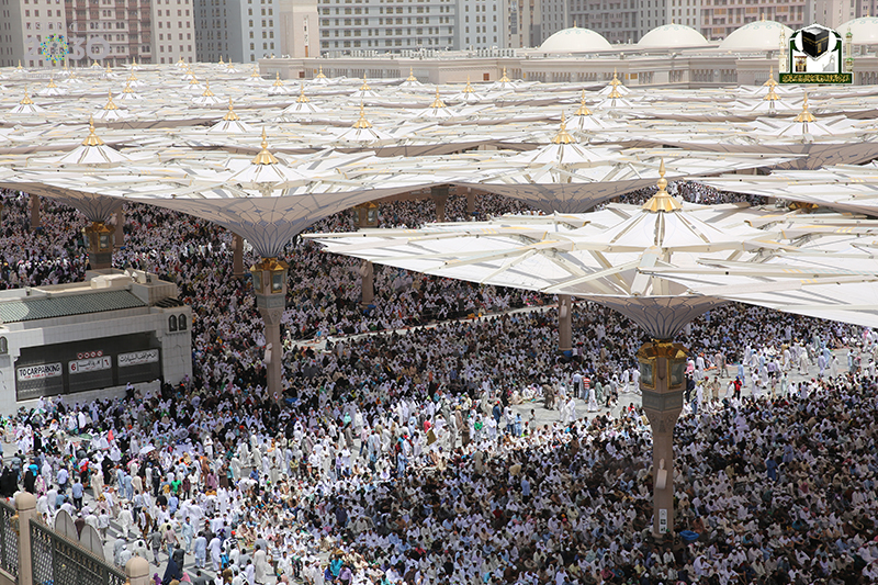 جموع المصلين يؤدون صلاة الجمعة في المسجد النبوي بيسر وطمأنينة