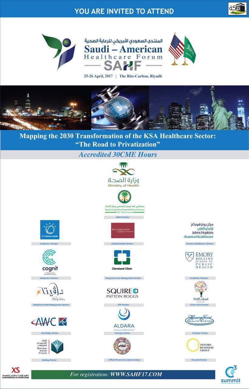 تحت رعاية معالي الدكتور توفيق بن فوزان الربيعة وزير الصحة سيتم إفتتاح المنتدى السعودي الأمريكي للرعاية الصحية 2017 من…