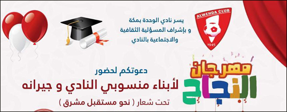 (مكة) – مكة المكرمة نادي الوحدة ينظم مهرجان النجاح بمشاركة أطفال من اليمن وسوريا ينظم نادي الوحدة بمكة مهرجان النجاح…