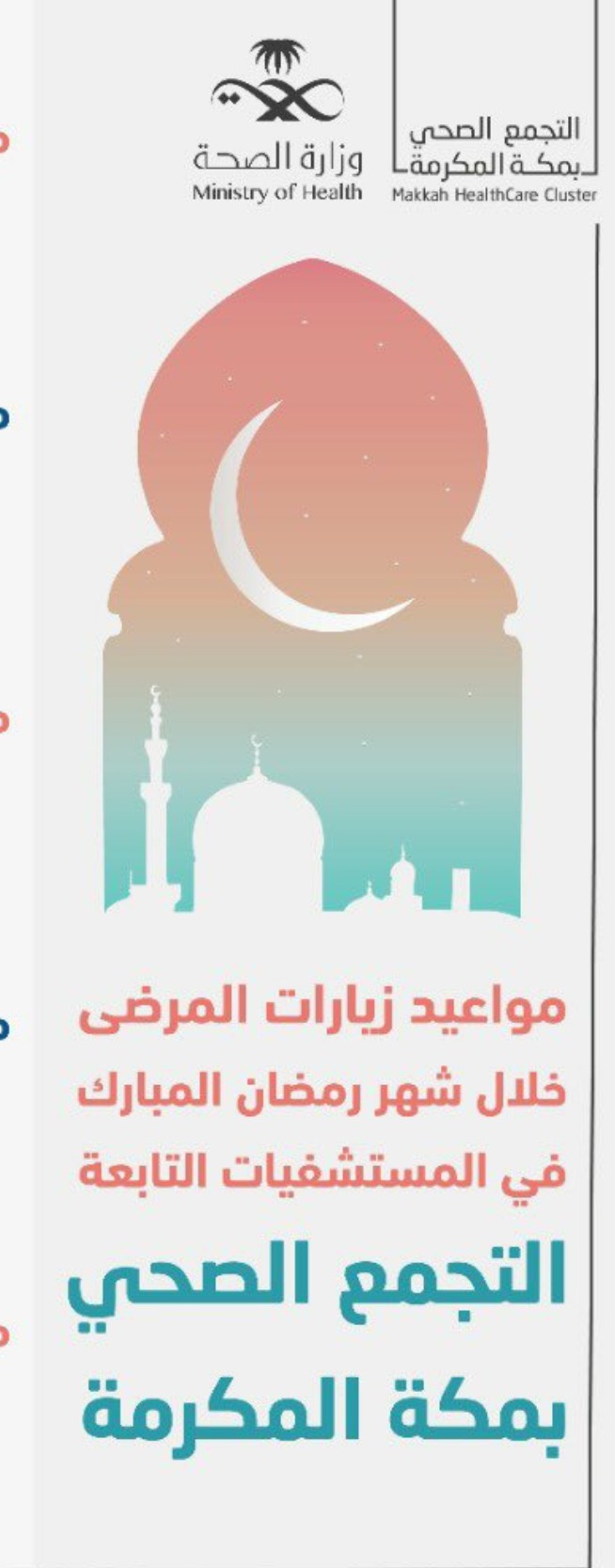 شملت 9 مستشفيات رئيسية … تجمع “مكة” الصحي يحدد مواعيد زيارات المرضى خلال شهر رمضان المبارك 1443